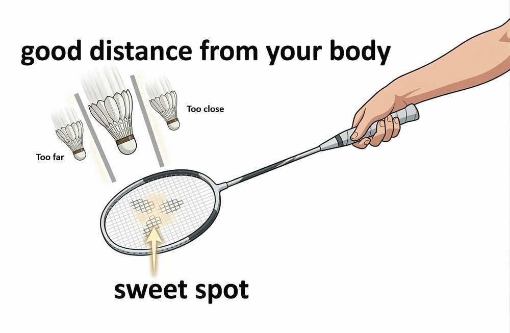 There is a range of distance that you can do the shot properly. Inside this range means the shuttle is not too far nor too close to your body.